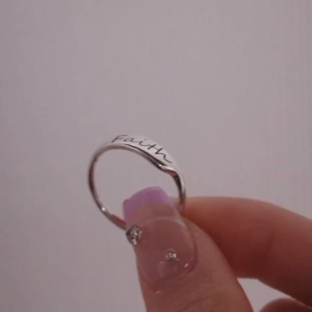 Faith - 925 Sterling Silver Women’s Adjustable Open Ring Custom Engraving Available